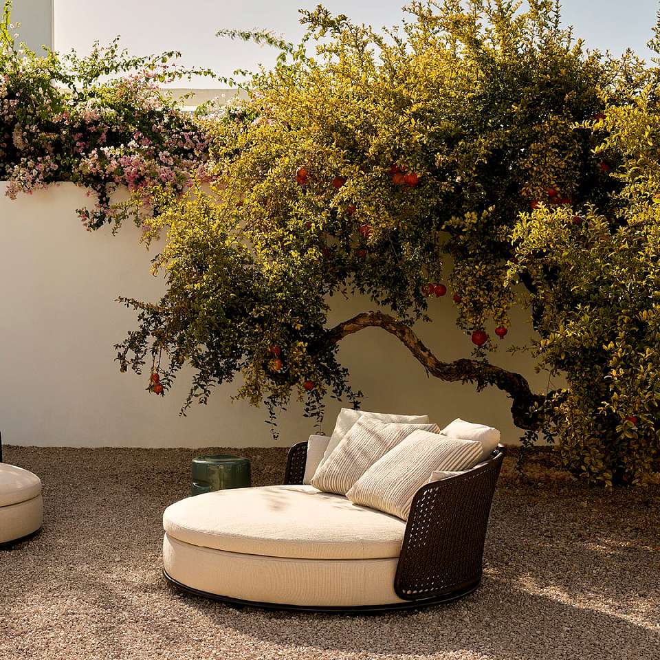 Су Чан проектирует настоящий островок комфорта, позволяющий полностью расслабиться и насладиться отдыхом на природе. Soori — это кушетка круглой формы со спокойным дизайном. Плетеная спинка добавляет изделию нотку элегантности, а тщательно подобранные тканевые переплетения обивки приятны на ощупь.